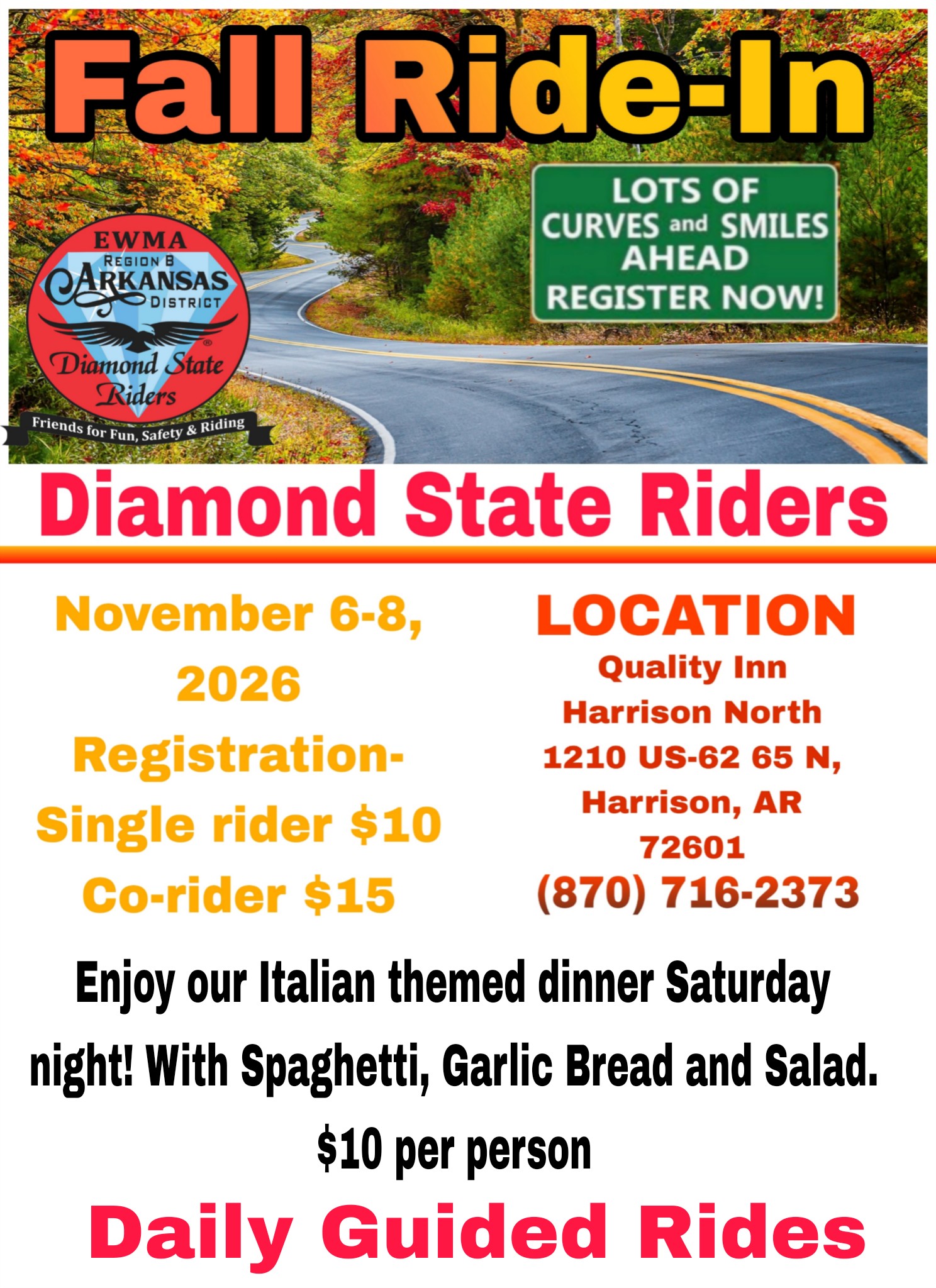 November 6 - 8, 2026 - Fall Ride-Inm - Harrison, AR - Flyer